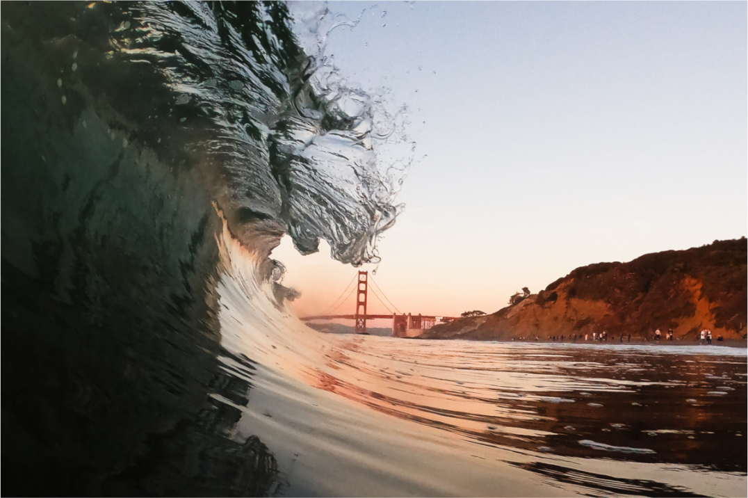 I’m not a chef, but if I were, I’d be kissing this one off to the dining room. A warm sunset vibe with amber colors reflecting off the glassy wave face + a crystal-clear wave lip gently about to graze the tip of the South Tower.