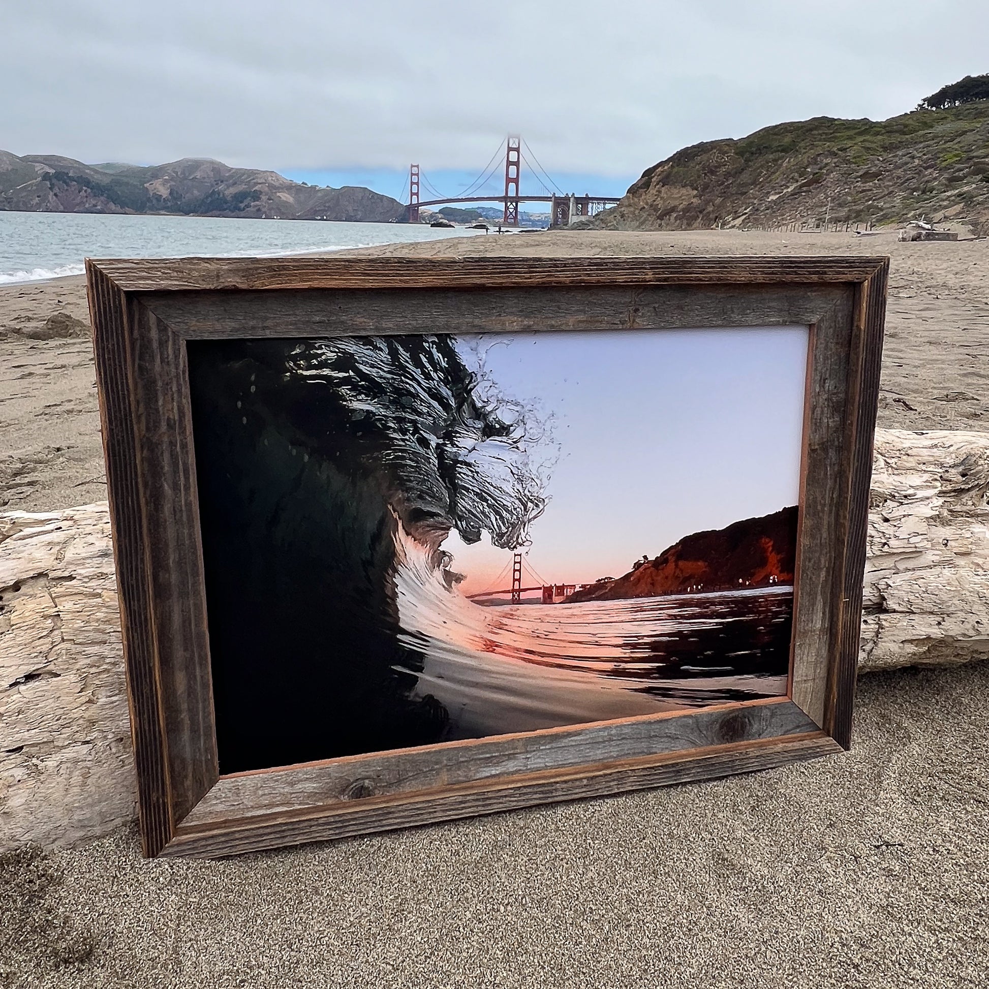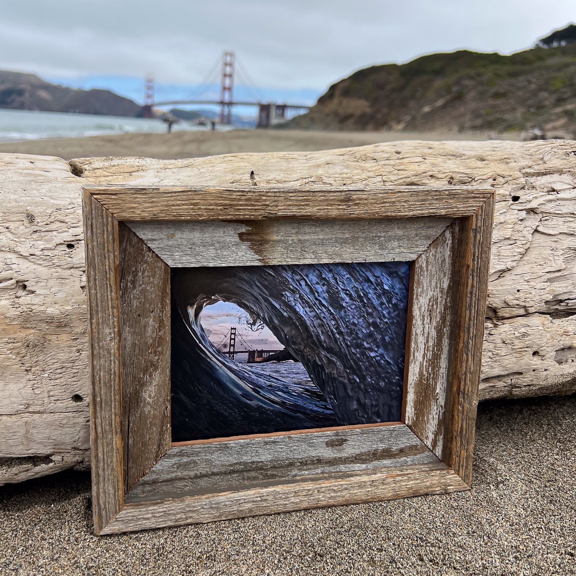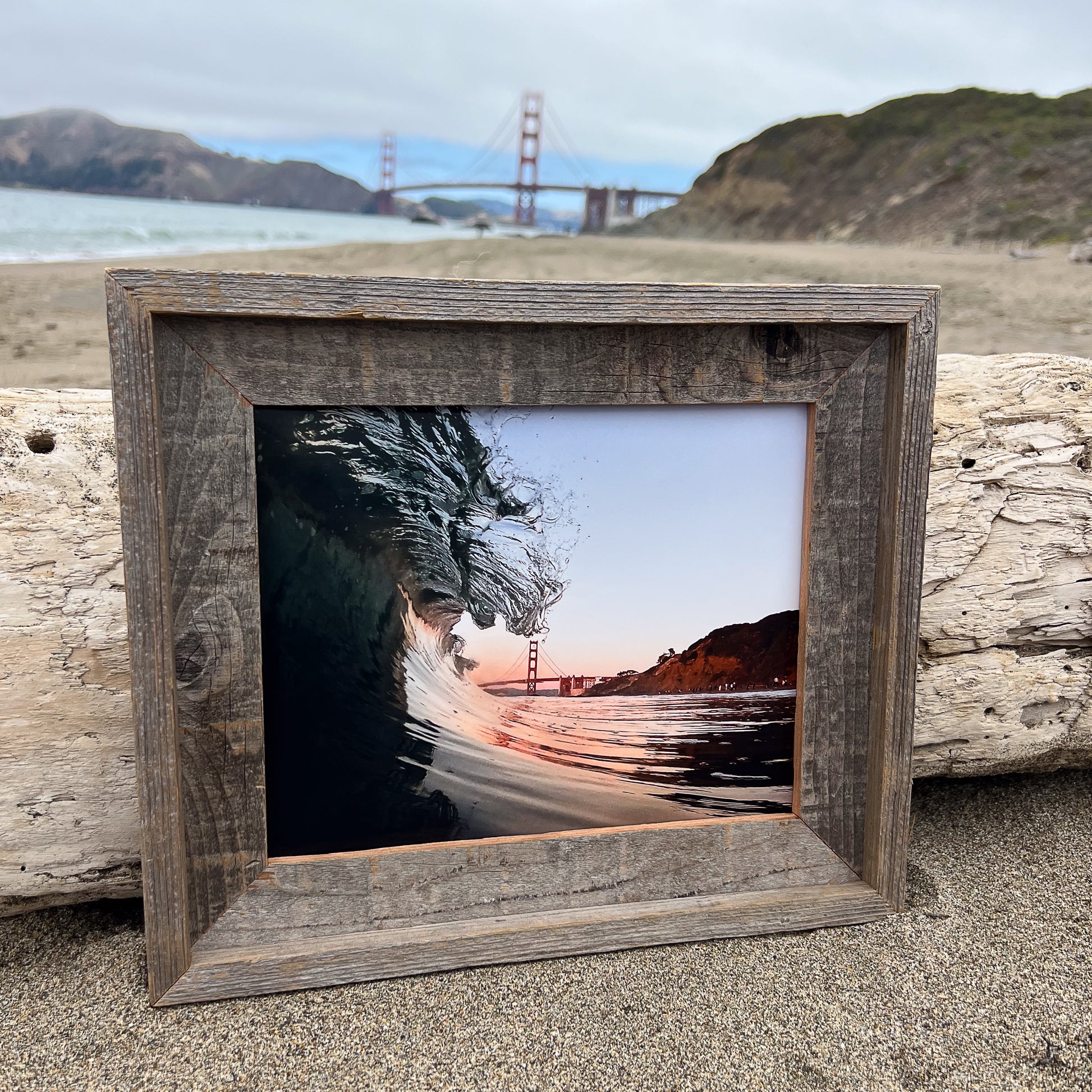 The Marine Layer Series features fine art prints set in reclaimed wood frames from Alibi Interiors of Aptos, California. Each piece is printed in-house, signed (front-or-back — your choice), and set in coastal timber that carries the texture of time — rugged, weathered, and full of soul.