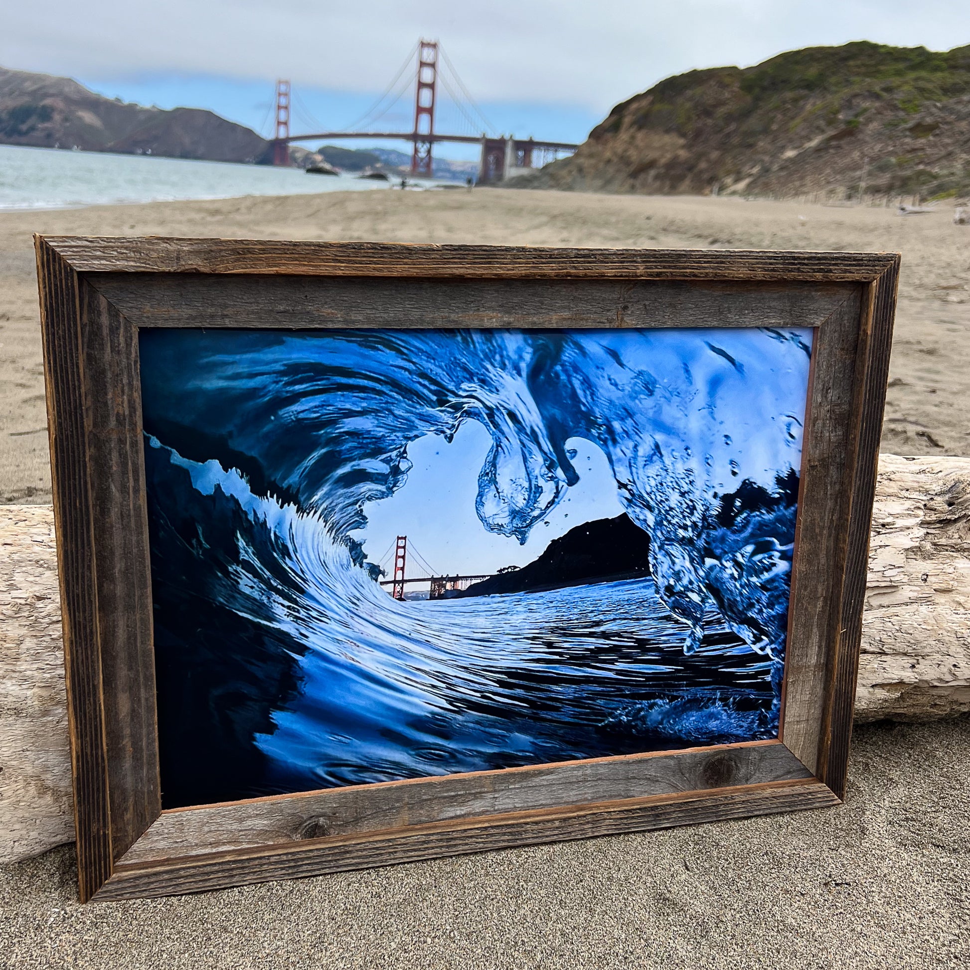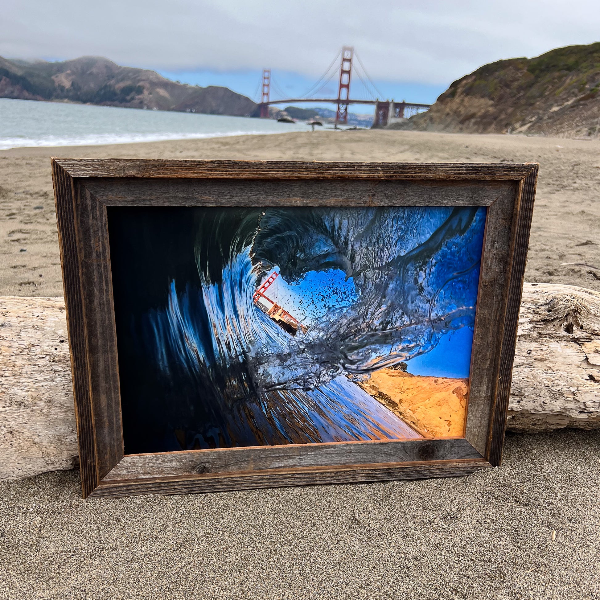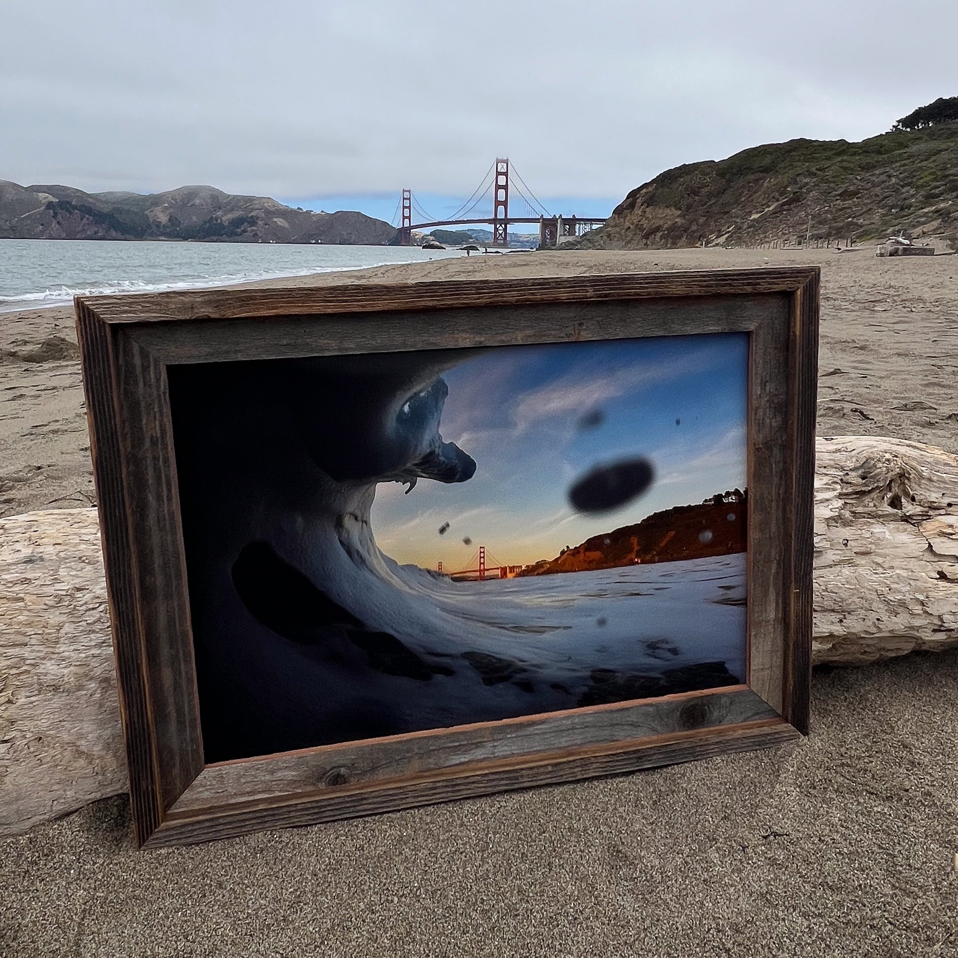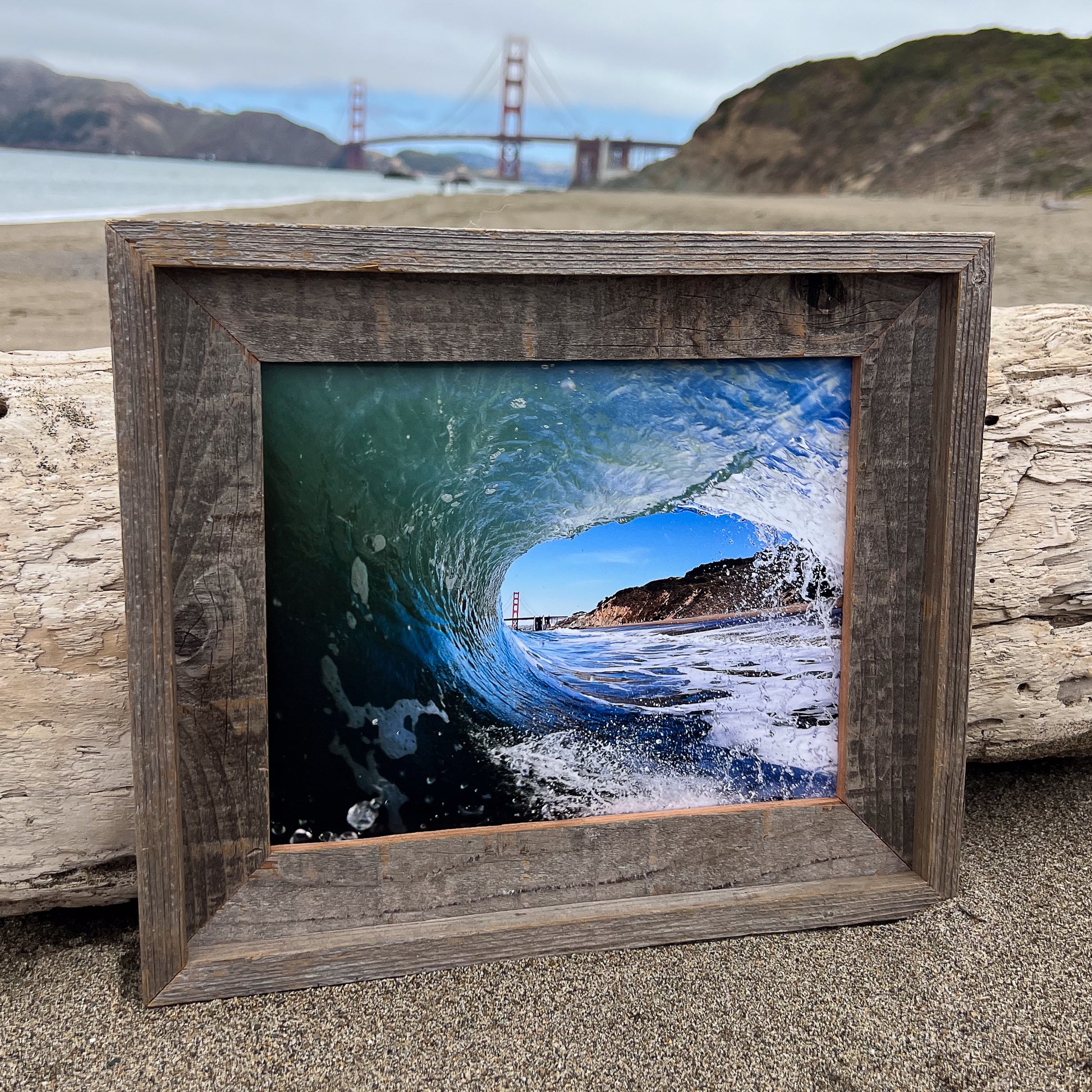 The Marine Layer Series features fine art prints set in reclaimed wood frames from Alibi Interiors of Aptos, California. Each piece is printed in-house, signed (front-or-back — your choice), and set in coastal timber that carries the texture of time — rugged, weathered, and full of soul.