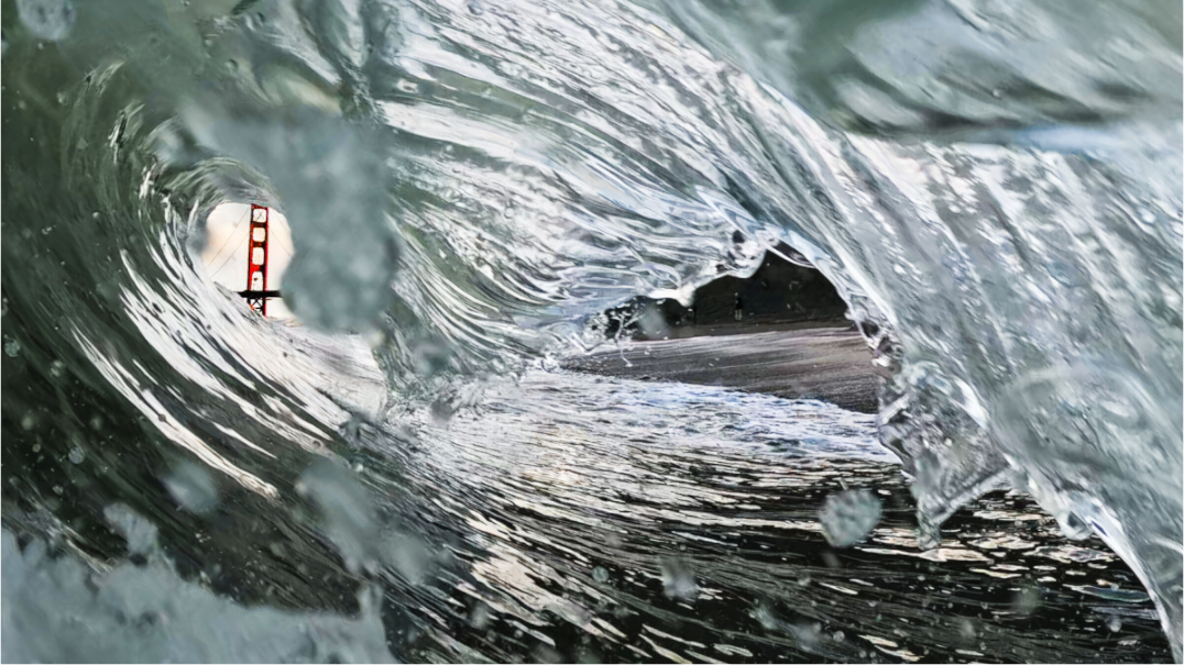 Just a glimpse! A shady beach with waves breaking right on the sand on a glassy morning, while the sun illuminates the International Orange coloring of the bridge’s south tower in the smallest of windows. This has become one of my favorite images!
